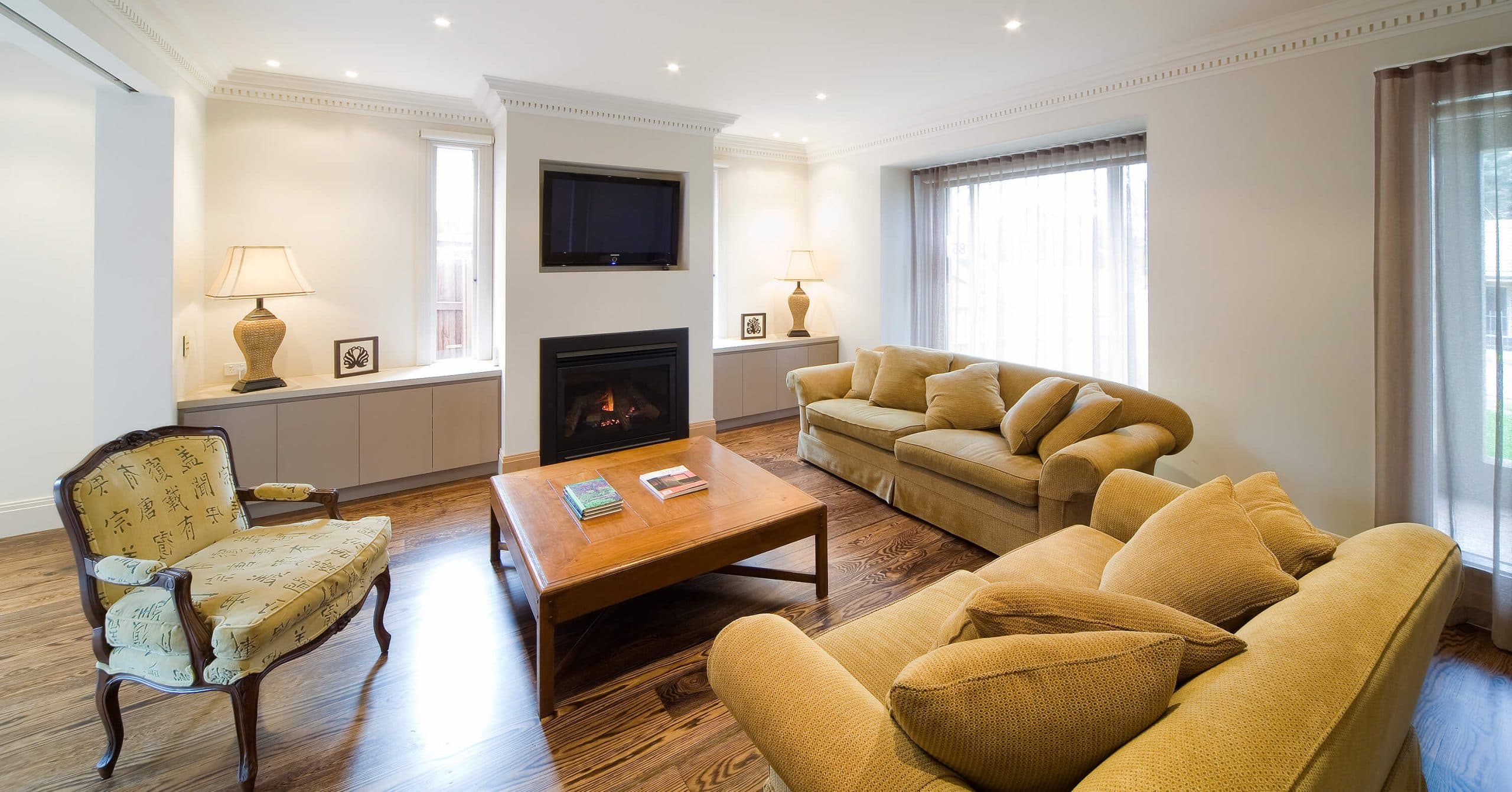 The formal living room is complete with streetscape views which includes the homes well manicured and landscaped front gardens. The room also features a bar with bar table and stools, which can be closed off from the living area by a floor to ceiling glass sliding door. Access from the the bar to the courtyard provides ease for the home’s entertainer’s complete with undercover kitchenette barbecue with commercial range hood, sink and storage cabinetry.